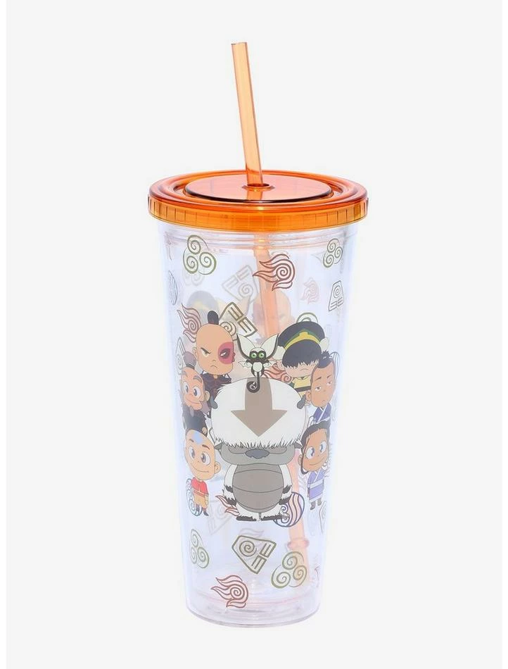 Practicing your bending skills? Whether you need to stay hydrated or keep some water with you for some emergency waterbending, this acrylic travel cup is perfect for your adventures with the Gaang! Rep Avatar: The Last Airbender with this chibi travel cup, featuring an allover toss print of the 4 nation’s symbols, and the main characters from the show in chibi form printed front and center on both sides. Comes with screw-on lid and reusable straw.